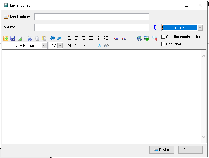 La ventaja de utilizar este método en relación al envió de email tradicional del programa, es que se pueden adjuntar mas archivos que tengamos y que son elaborados fuera del sistema.