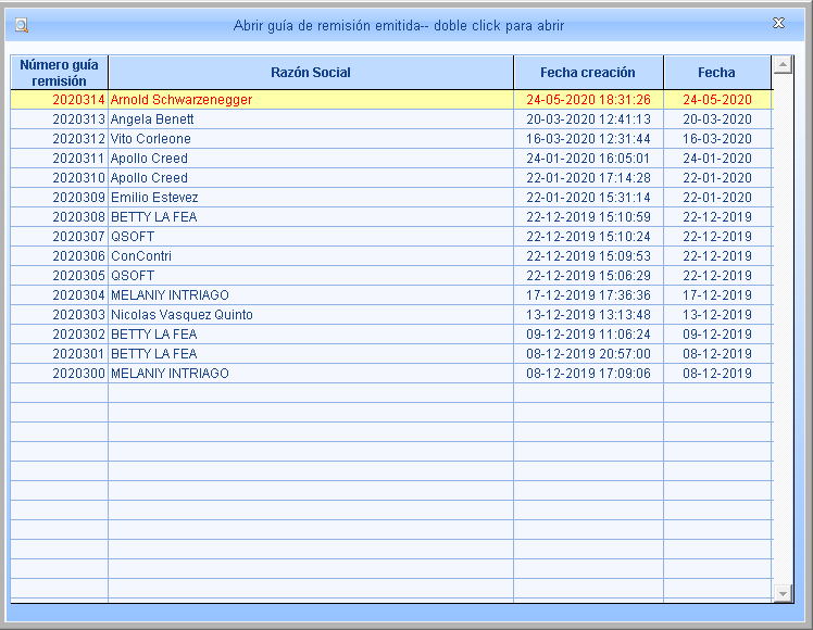 Para realizar la modificación del documento abrimos la guía que queremos modificar, seleccionándola de la lista de todas las guías que hemos emitido.