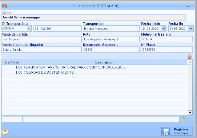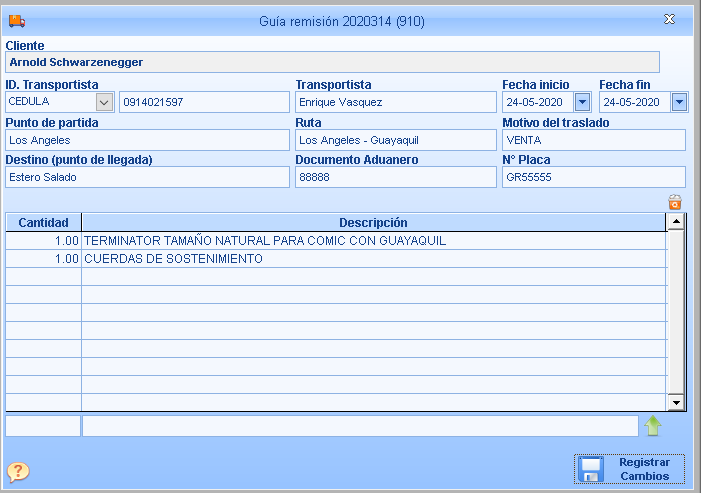 Hacemos las modificaciones que necesitemos y luego se presiona el botón Registrar Cambios.
