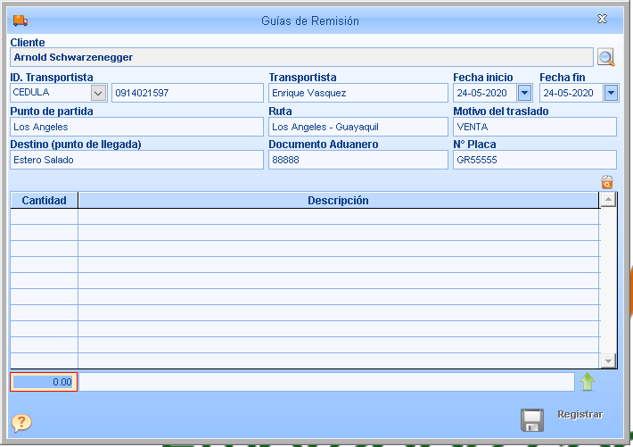 Presionamos el botón Registrar para que el programa grabe el documento. Recibiremos un pedido de confirmación.